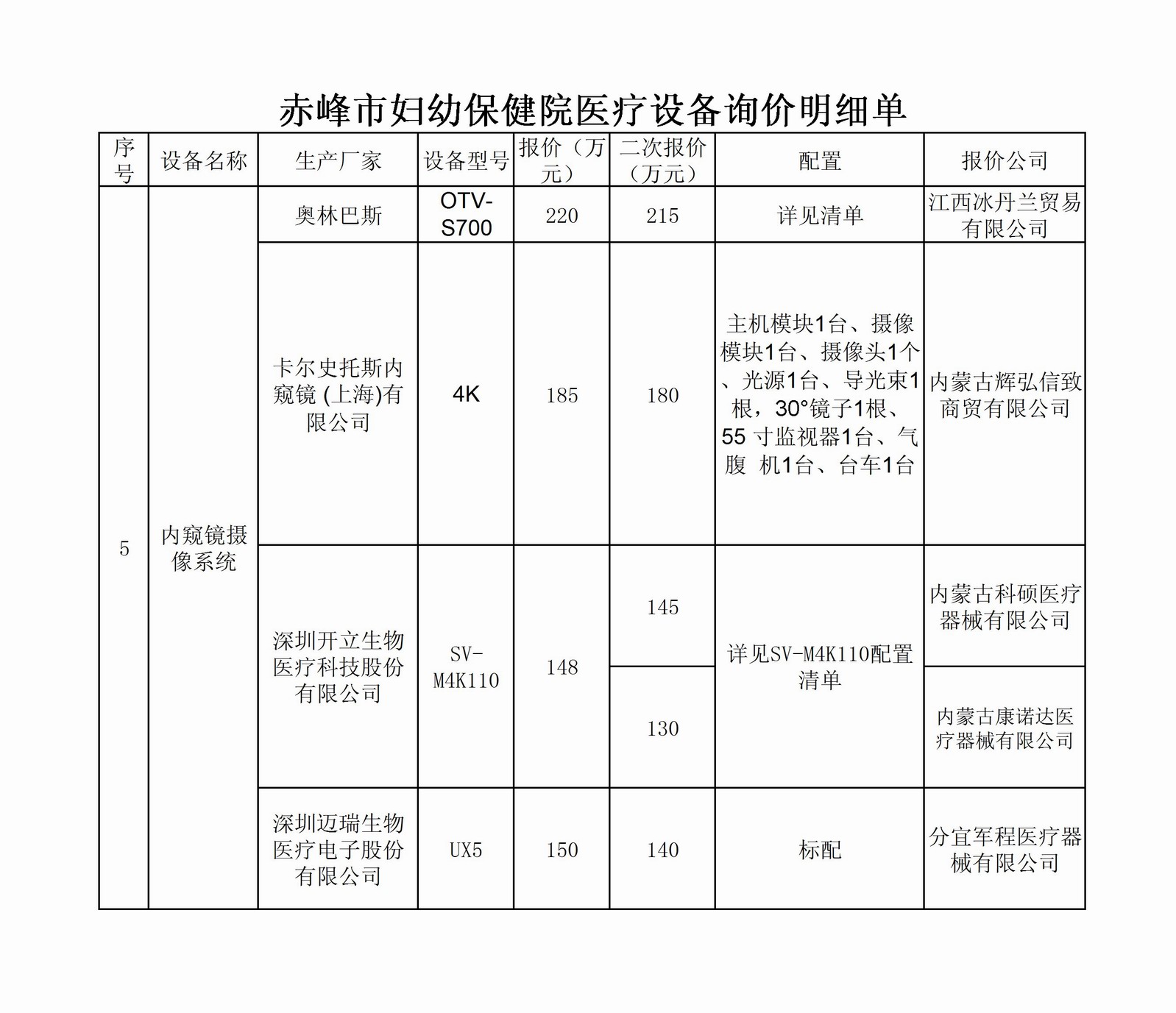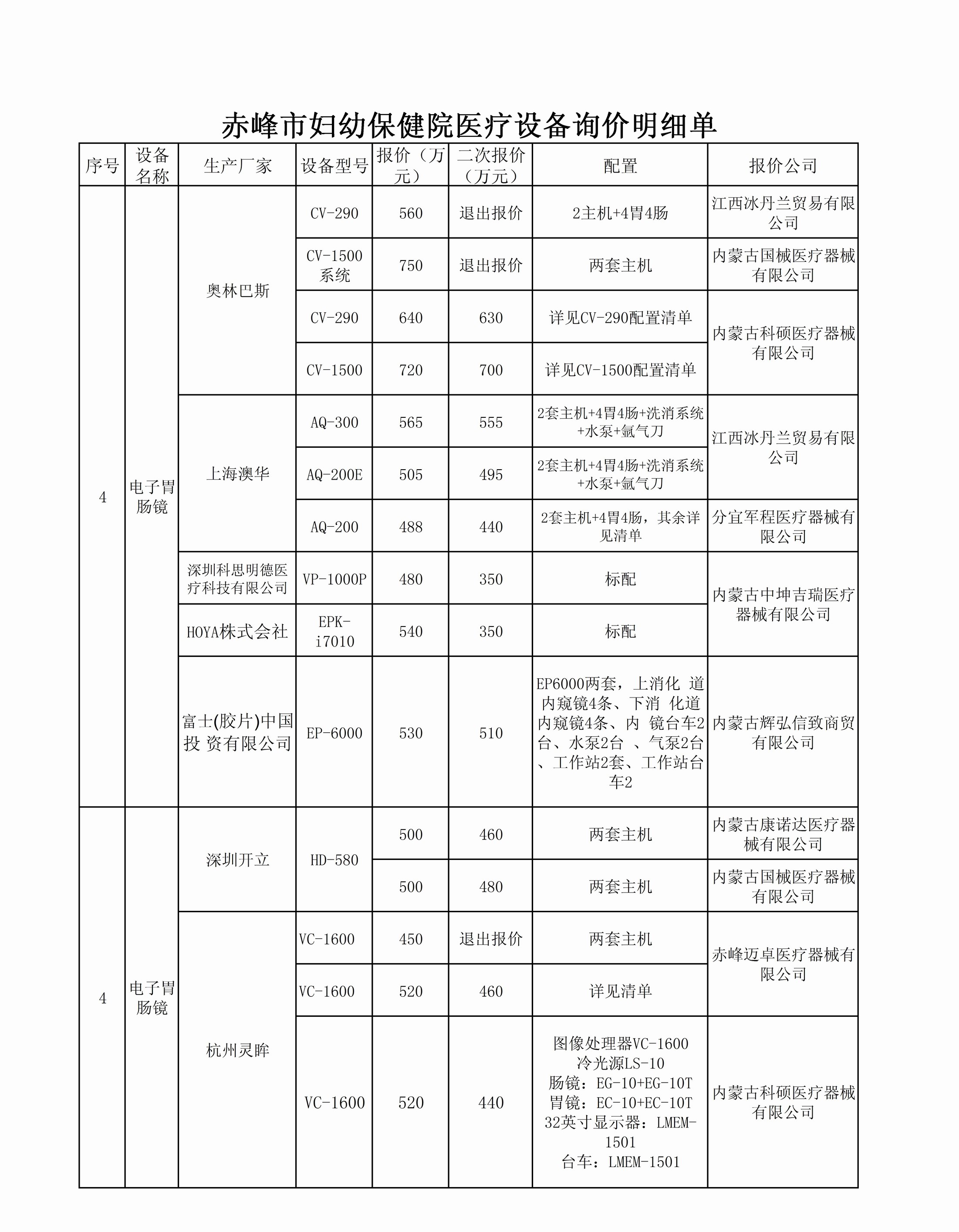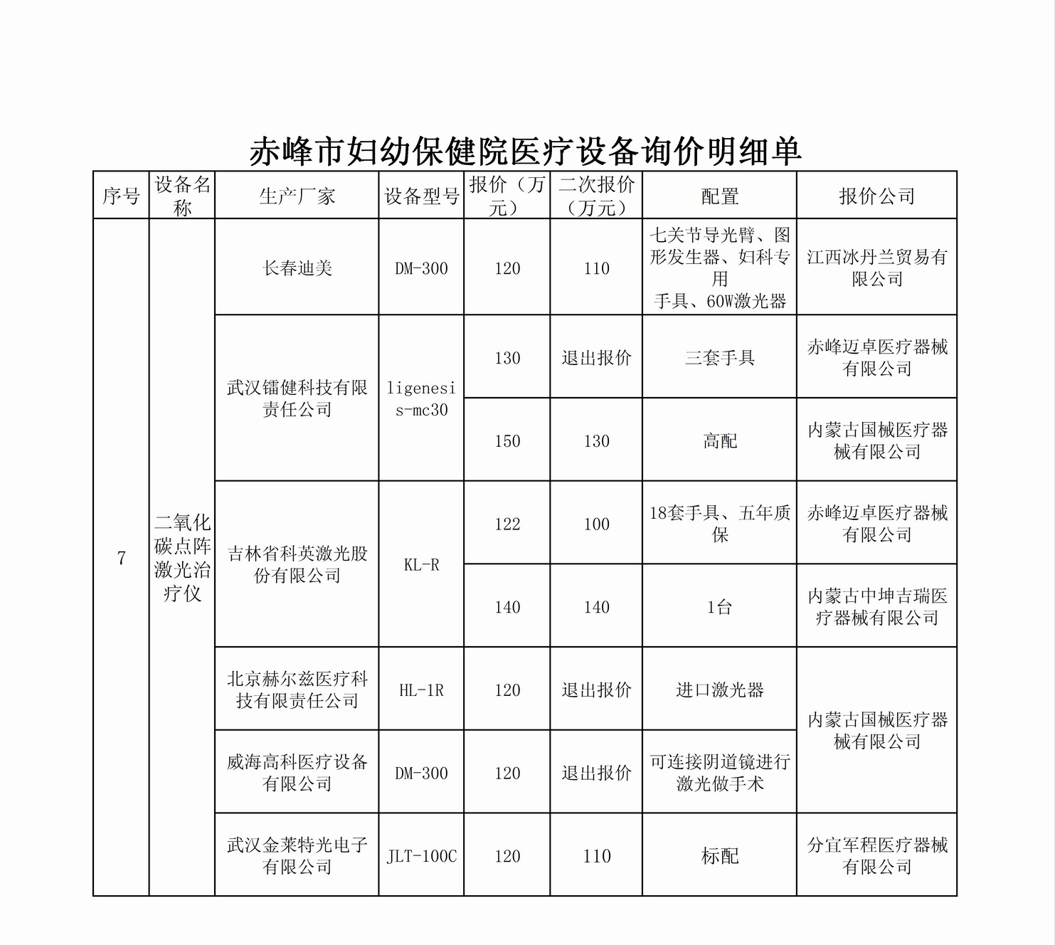 赤峰市妇幼保健院新址设备采购项目议价名单公示