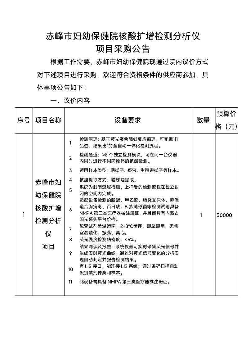 赤峰市妇幼保健院核酸扩增检测分析仪项目采购公告