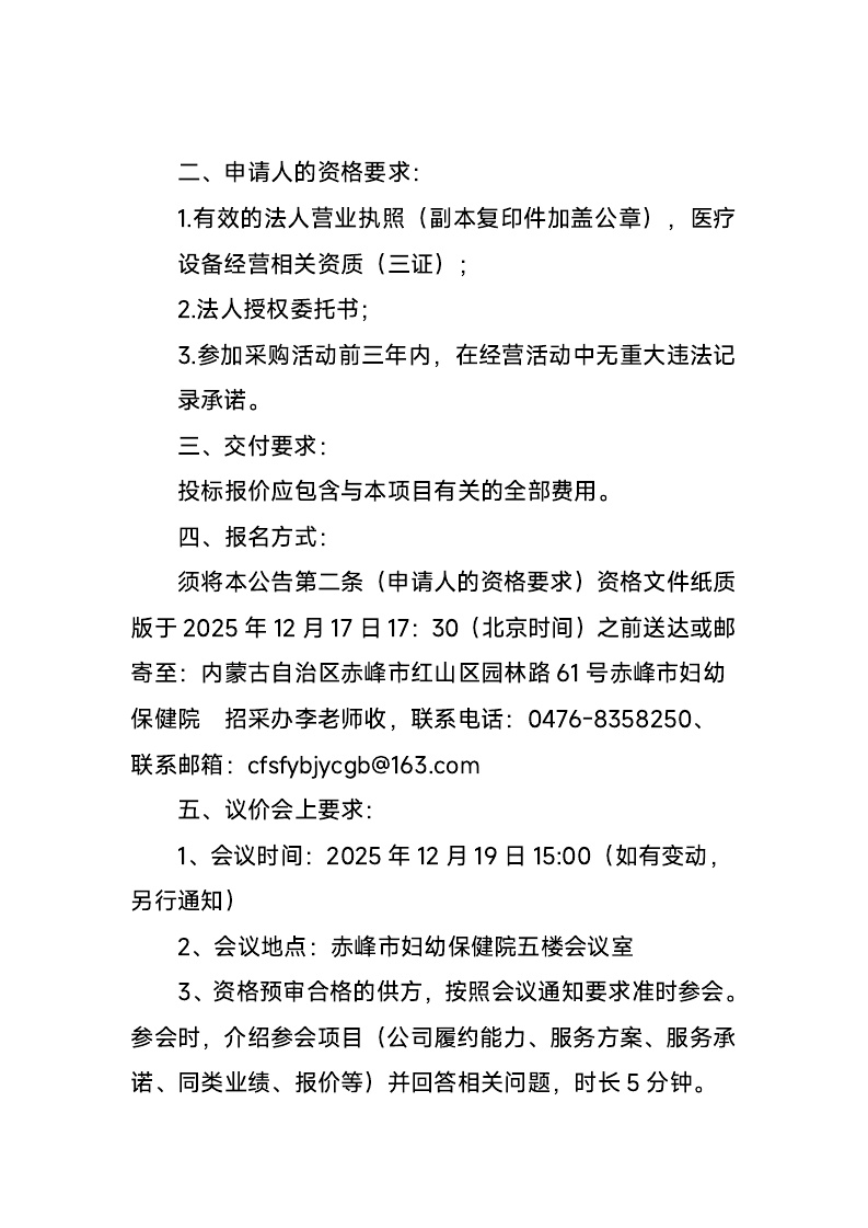 上一条:赤峰市妇幼保健院放射设备年度监测服务项目采购公告