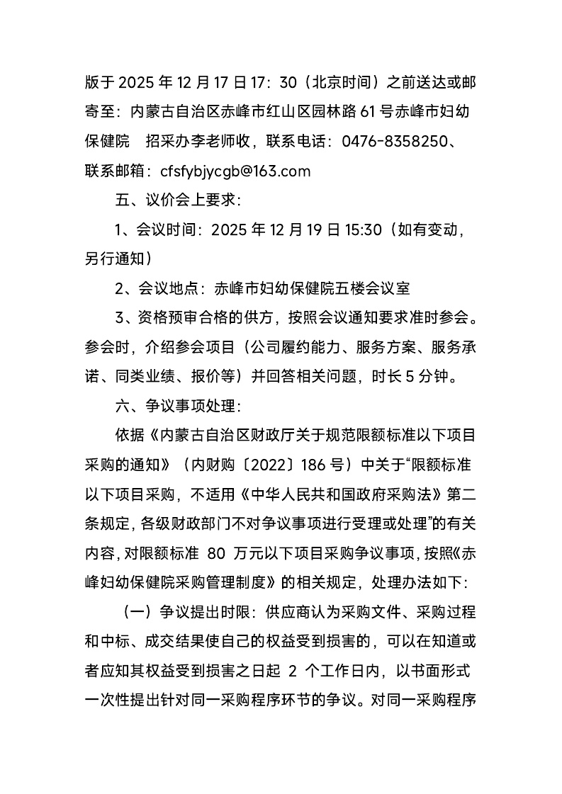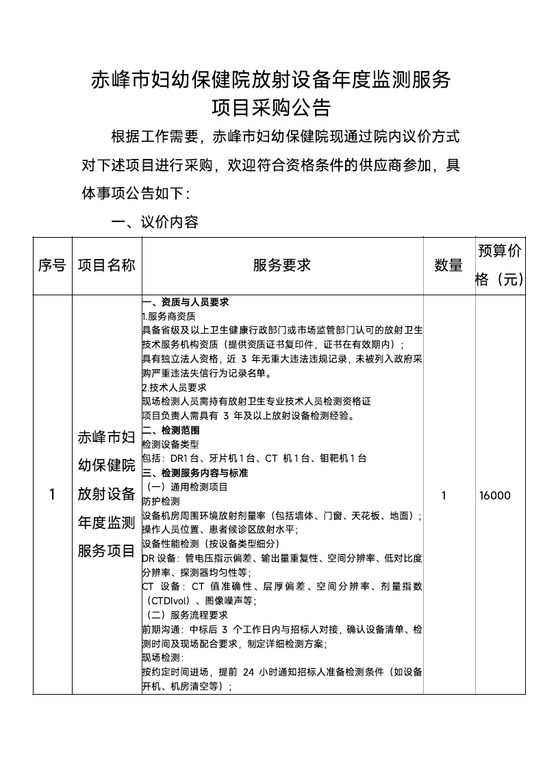 赤峰市妇幼保健院放射设备年度监测服务项目采购公告