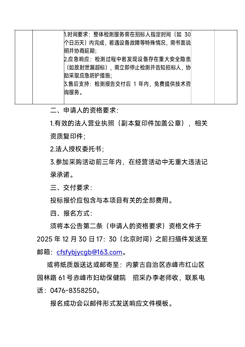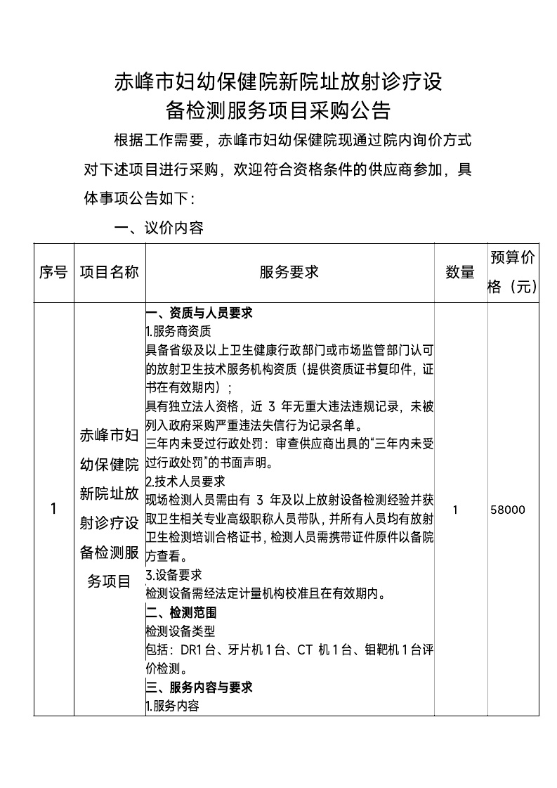 赤峰市妇幼保健院新院址放射诊疗设备检测服务项目采购公告