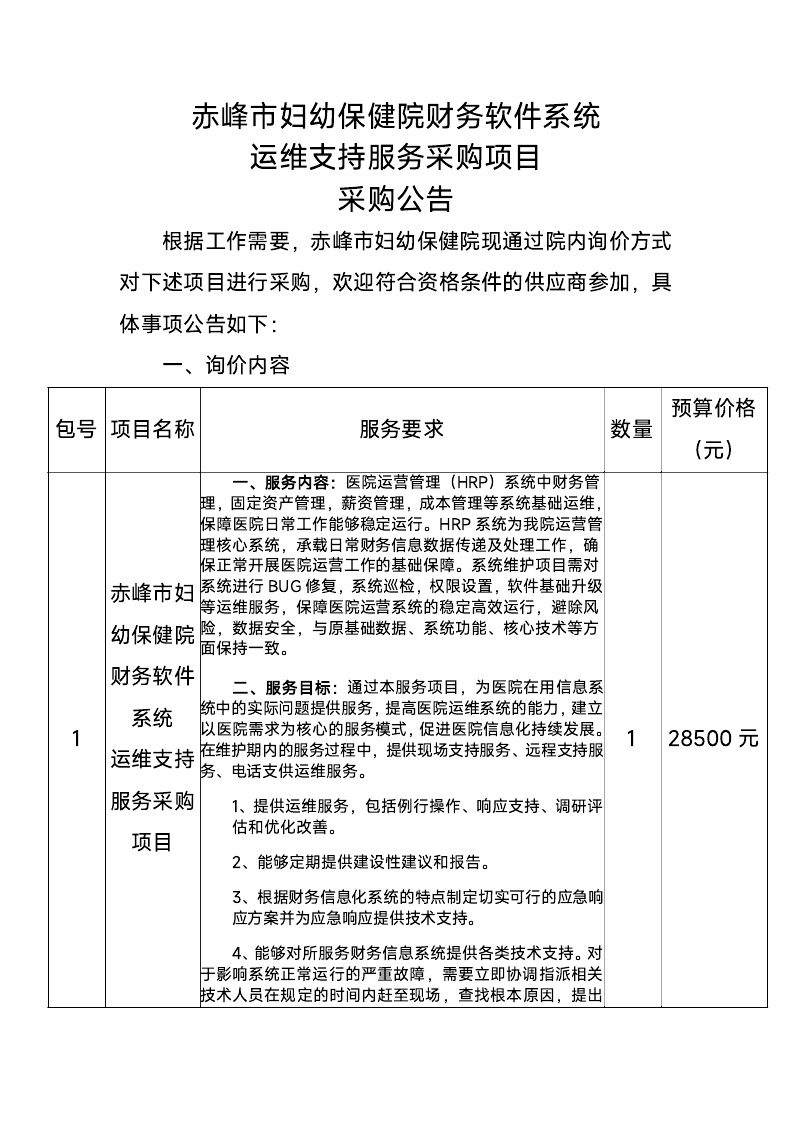 赤峰市妇幼保健院财务软件系统运维支持服务采购项目采购公告