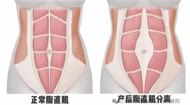 一些女性朋友在分娩后可能会有这样的烦恼:虽然体重已经恢复至怀孕前的水平,但是腹部依然明显突出,肚脐凹陷,肚皮松垮下垂,看起来很不美观。此外,还可能有腰背疼痛、憋不住尿、夜尿频繁等问题。这可能是产后腹直肌分离惹的祸。 产后腹直肌分离是常见的产后并发症,指女性生产后,左右两侧腹直肌分离超过2厘米,导致腹壁肌肉松弛、肌力减弱。晚孕期发病率100%,产后妇女发病率约30-68%。 有些因素会导致腹直肌分离,包括高龄、高体重指数、多胎妊娠、高体重儿、孕期体重过大以及产后缺乏锻炼等。腹部肌肉、盆底肌和盆底筋膜的相互协调作用有助于维持腹盆腔的动态和静态平衡,其中任一因素的改变都会导致整体的功能障碍。 妊娠会导致腹直肌分离。 主要是由于随着孕期增加,胎儿的成长,子宫不停变大,身体每天都在变化,孕妇的腹直肌被动牵拉,向两侧分离,加强了静态姿态的不平衡。同时,在孕期激素水平的影响下,孕妇腹壁结缔组织的弹性会有所增加,以便让胎儿获得足够的生长空间,但这会进一步加重腹直肌分离的程度。孕妇自妊娠中晚期可出现腹直肌向两侧分离,产后6个月左右,部分产妇的腹直肌可以逐渐向腹中线靠拢,恢复至原来的位置,如果产后半年尚不能恢复,就形成了腹直肌分离。而且,如果产妇腹壁薄弱、胎儿较大或是多胎妊娠,腹直肌也可能难以自行恢复至原位。 自产后至8周复原速度最快,此后进入平台期,至产后12个月月1/3不能完全复原。 包括腹直肌分离的产后妇女腹部肌肉力量下降,可导致腰背部疼痛、尿频、便秘、盆腔脏器脱垂等盆底功能障碍以及疝气、形态改变等情况。如果未能及时纠正,可能一直会伴随一生。 产后腹直肌分离可以通过体征检查——临床快速触诊法、超声检查、CT检查、磁共振检查等确诊。建议产妇及时就诊,检查腹直肌分离程度,尽早采取有效的康复治疗措施。患者可以前往我院的产后康复科咨询就诊。 供稿|超声科 张 竞 编辑|崔佳慧 审核|杨 雪