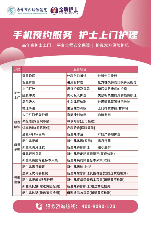 互联网+护理服务 守护健康新模式 互联网+护理上门服务省时又安心,专业护理,就在身边。无论是新生儿沐浴抚触,还是月子里的伤口换药、乳腺按摩,亦或是老年人的胃管留置、导尿、打针,手机一键预约专业护理直接上门,无需排队等待,不仅技术娴熟,更带着一颗温暖的心,让您在熟悉的环境中得到最佳的照顾。 互联网+护理我们是认真的! 2015年6月我院开展产后亲情访视服务,成为内蒙古自治区首家开展到家护理服务的医疗机构,10年来我们不断完善服务体系,了解患者需求,除产科母婴护理服务外,相继开展就医陪诊、护士上门等业务,现我院携手金牌护士平台推出线上“互联网+护理服务”,更好地满足群众多样化、差异化的健康需求,方便广大患者及家属线上签订服务。 我们承诺:专业资质保障、服务内容规范、安全与隐私保护、优化服务流程,按时上门,减少患者等待时间,在追求健康的路上,我们与您同行!
