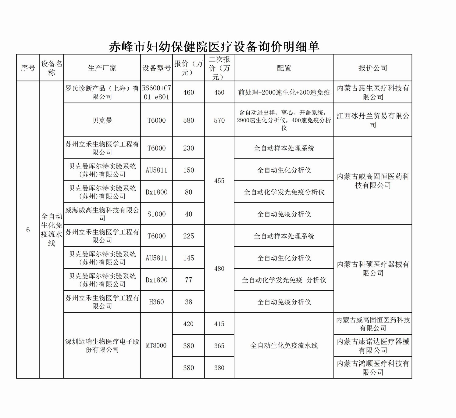 赤峰市妇幼保健院新址设备采购项目议价名单公示