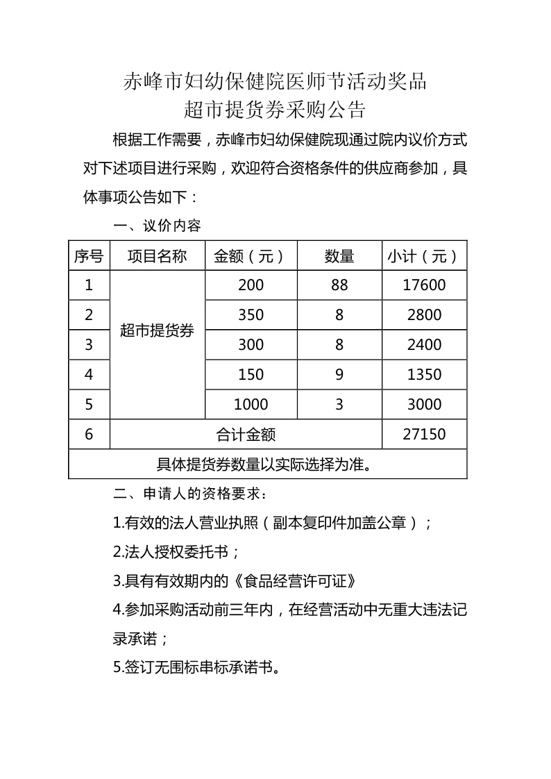 赤峰市妇幼保健院医师节活动奖品采购公告