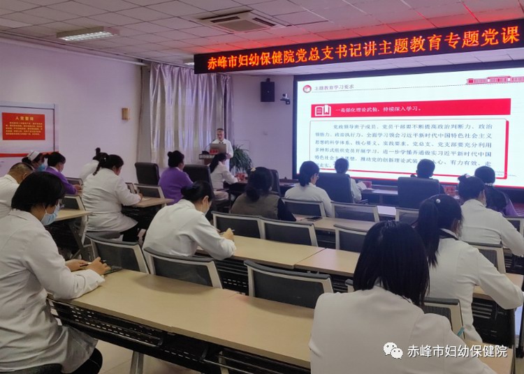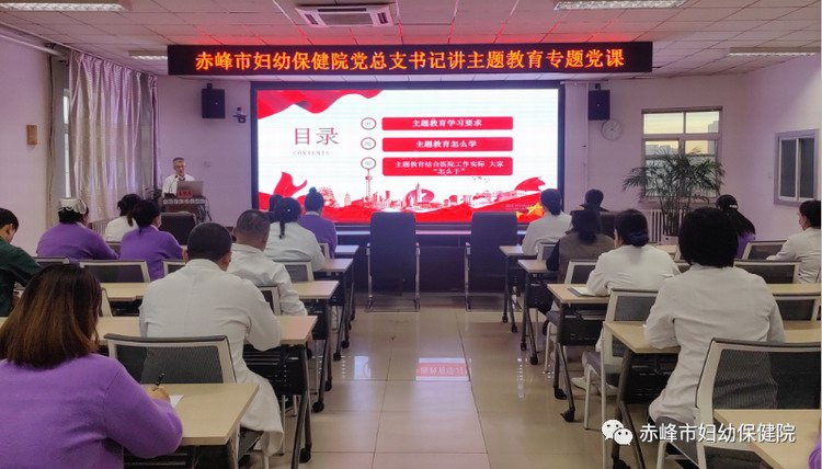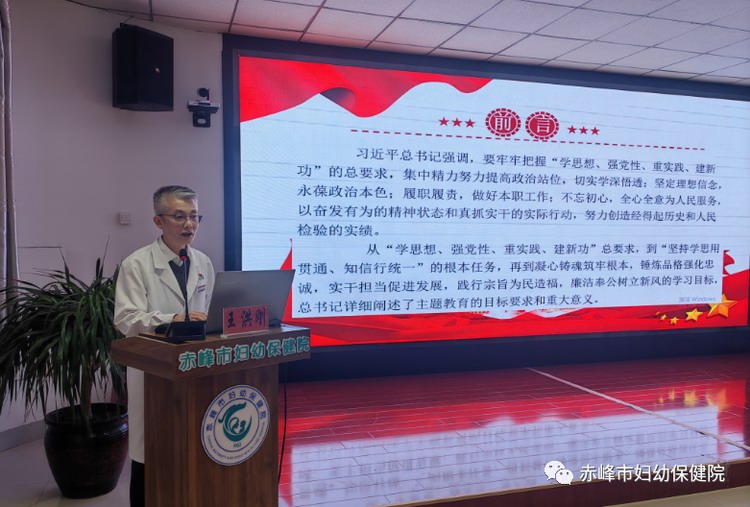 为扎实开展主题教育,按照医院主题教育工作安排,11月28日下午,赤峰市妇幼保健院党总支书记王洪刚以《以高质量主题教育推进医院高质量发展》为题讲授主题教育专题党课。院领导班子成员、环节干部、全体党员、入党积极分子等60余人参加学习。