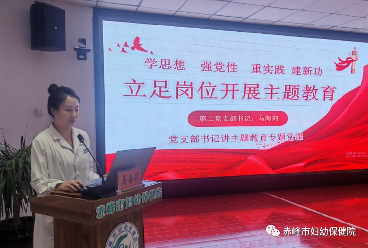 第二党支部书记马海莉同志在党课中阐述了开展主题教育的深刻意义,要求全体党员要深刻理解并牢牢把握主题教育的总要求,夯实对党忠诚、为党分忧、为党尽职、为民造福的理想信念,让主题教育深入人心、打动人心、激励人心,要坚持将主题教育同推动医院发展各项工作相结合,努力在破解群众反映强烈的重点问题、解决制约医院发展的难点问题上取得实实在在的成效。