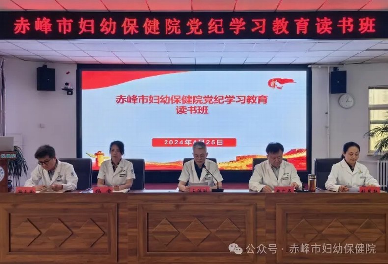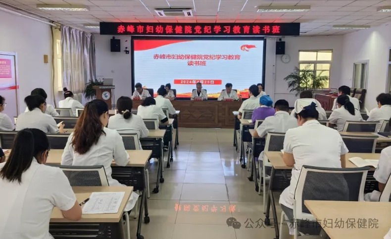 4月25日-26日,赤峰市妇幼保健院召开党纪学习教育读书班,深入学习贯彻习近平总书记关于党纪学习教育的重要讲话和重要指示精神,认真学习新修订的《中国共产党纪律处分条例》,引导广大党员干部学纪、知纪、明纪、守纪。医院党总支书记王洪刚主持学习,党政领导班子、全体党员、积极分子及入党申请人共50余人参加。